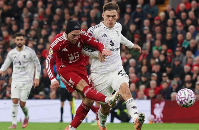 下半场易边再战。第50分钟,加克波在禁区左侧的射门击中立柱,他已经3次中柱了,太不可思议。随后,萨拉赫的凌空射门踢高了。第60分钟,麦卡利斯特射门踢偏了。4分钟后,埃基蒂克的远射踢飞了。第78分钟,利物浦终于进球了!这一次加克波把握住了机会,他门前包抄把球送进空门。第84分钟,曼联绝杀!马奎尔头球顶进!太不可思议了。最终,利物浦1-2曼联。阿莫林创造奇迹,征服了魔鬼主场。